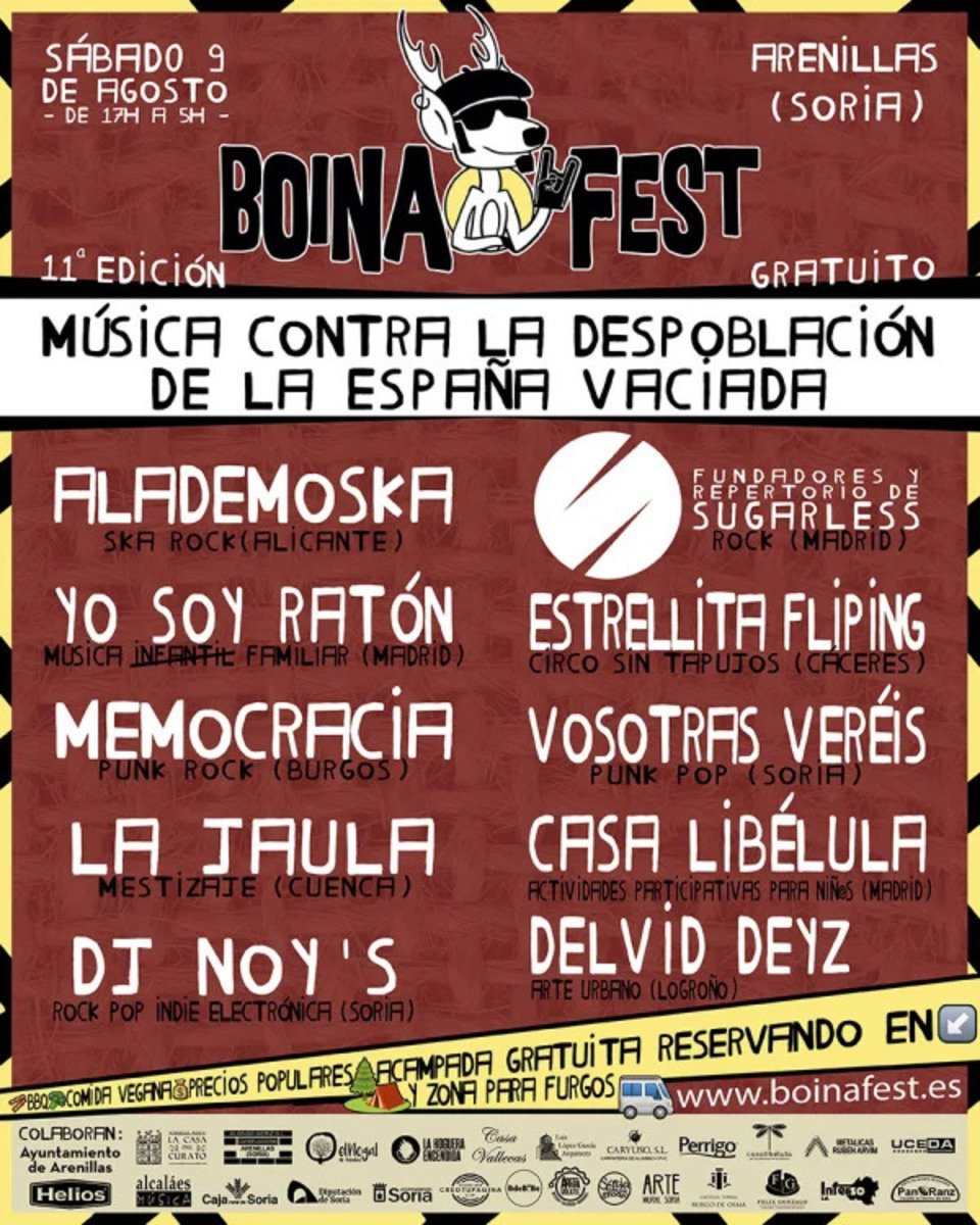 Desde las 17:00h hasta las 05:00h, el BoinaFest promete 12 horas de ambiente festivo y para todos los públicos. Demostrando una declaración de resistencia rural desde uno de los pocos pueblos que mantiene su población estable desde hace 40 años.