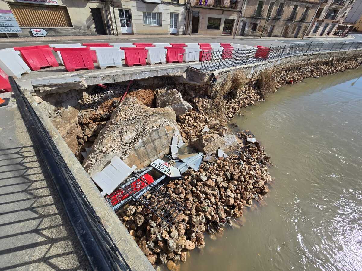 Sobre las doce de la mañana de este martes 30 de septiembre, se ha desprendido la acera que une el puente de San Esteban de Gormaz y se ha hundido el suelo de la misma. Es la acera en la que se situaban los carteles indicativos de la N-110, acera que es parte de la N-122, y que hace 90 grados con el puente. En Cope Uxama hemos hablado vía telefónica con Daniel García Martínez, alcalde de San Esteban.