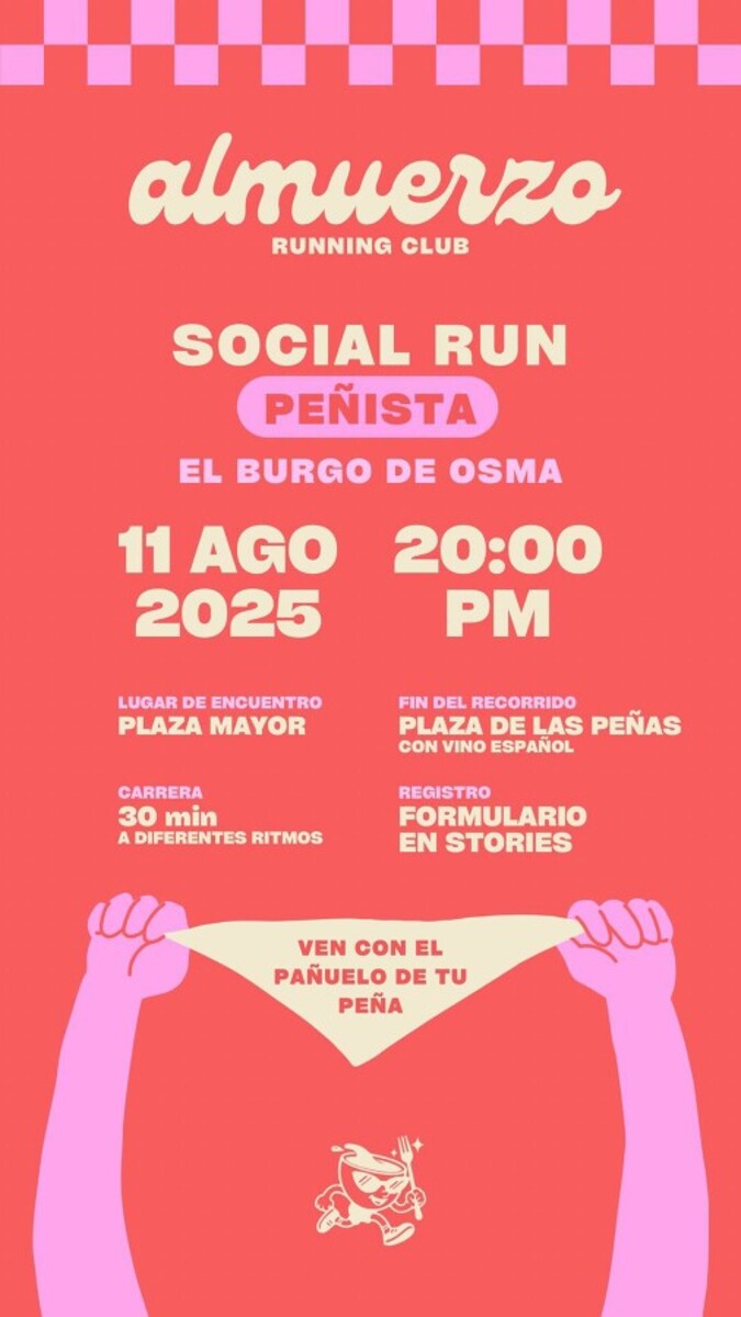 Lo que empezó como un grupo de amigos que salían a correr y luego compartían un buen almuerzo, se ha convertido en todo un movimiento social. Así nace Almuerzo Running Club, un colectivo con estilo propio, una taza como logo y presencia en redes sociales, que ha sabido conectar con la juventud de El Burgo de Osma. Tras una primera social run improvisada el año pasado después de las fiestas, el grupo ha crecido hasta reunir a decenas de corredores, surgiendo incluso sedes alternativas en ciudades como Madrid y Santander.