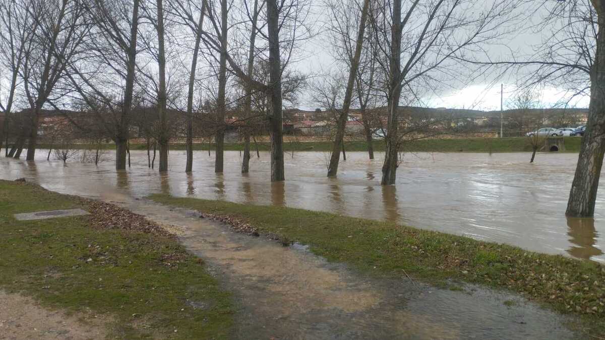 A día de hoy, jueves 5 de febrero, la crecida de los dos ríos que cruzan El Burgo de Osma aumenta, y de momento no desborda la carretera de La Rasa. Por la zona del parque del Carmen el agua llega a los jardines anexos, y a la zona de mesas del merendero.