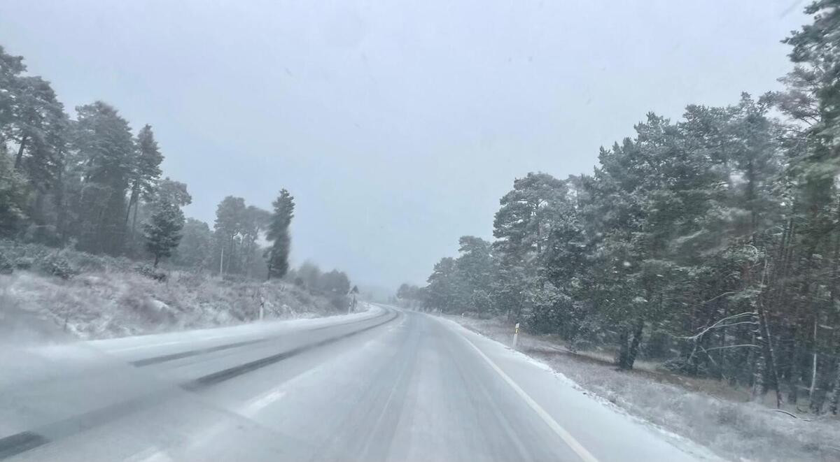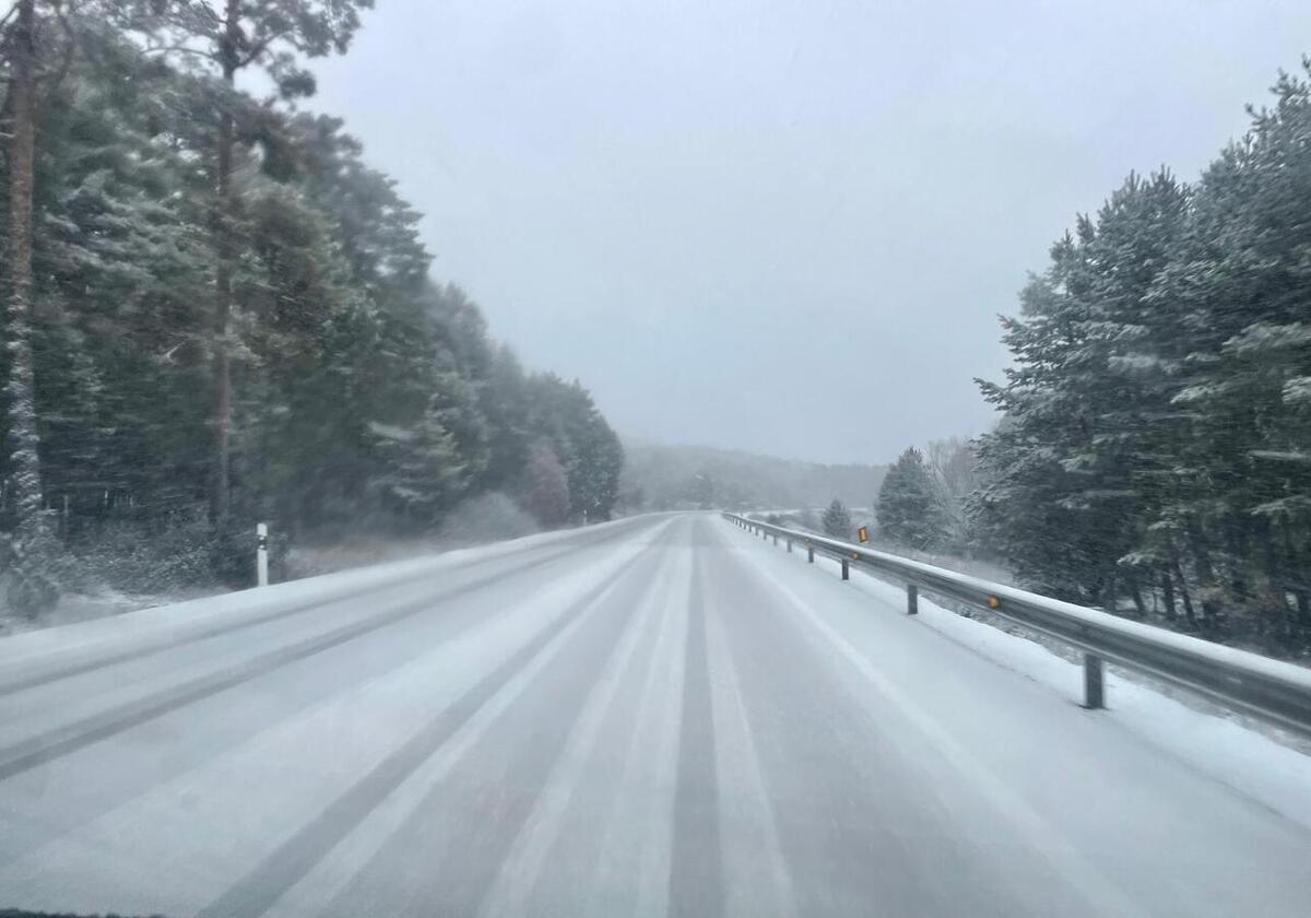 En poblaciones como El Burgo de Osma ya ha llegado la nieve tambien. La oyente nos ha contado que ha circulado a 30 kilómetros por hora en este tramo de carretera. Mándanos fotos si nos lees desde algún punto de la provincia de Soria y la nieve es abundante.